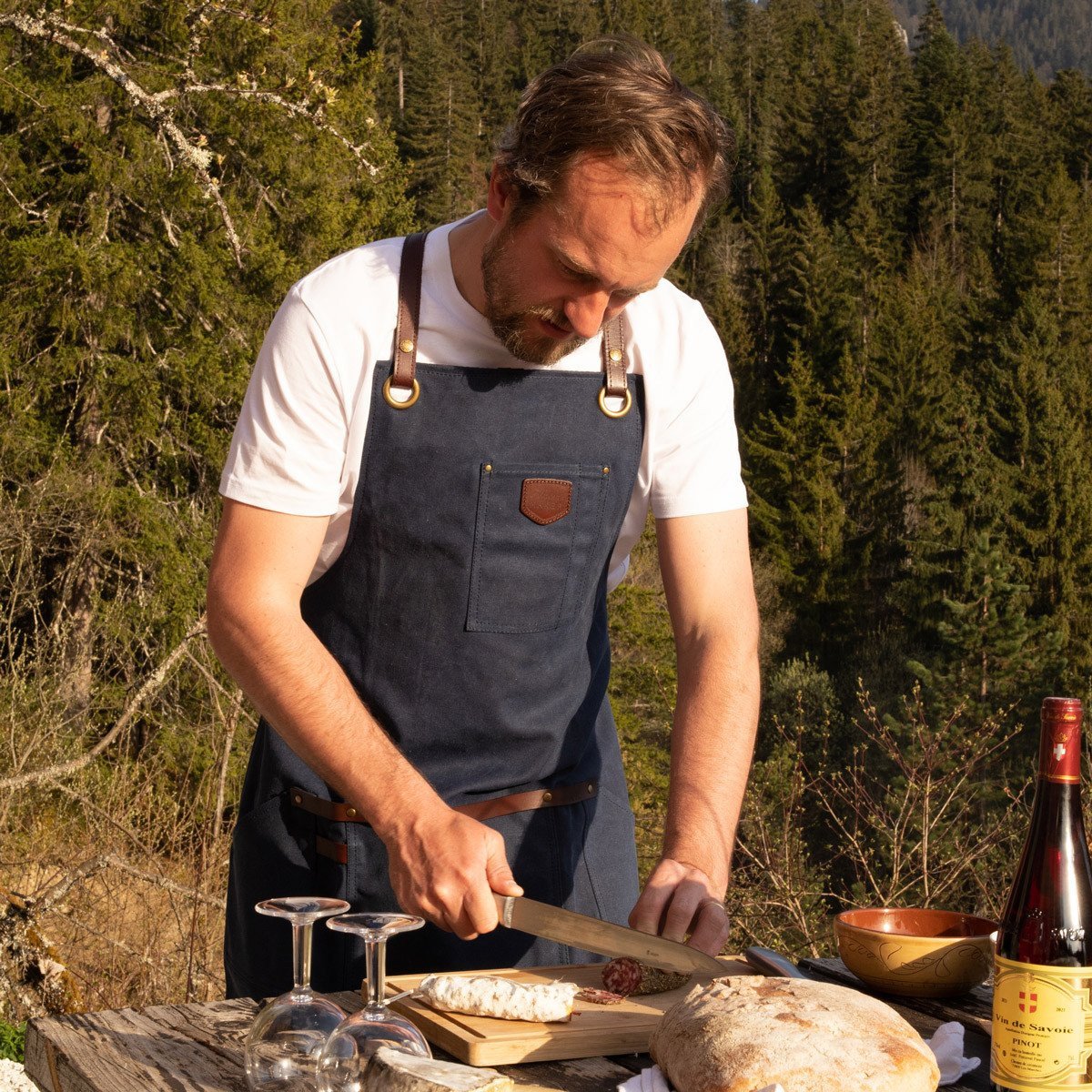 The authentic leather and waxed canvas apron from Alaskan Maker.