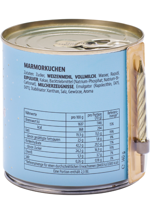 The Cancake is the perfect gift idea for spontaneous surprises or festive occasions. This ready-to-enjoy cake-to-go is a moist marble cake and comes with an elegant small golden candle.