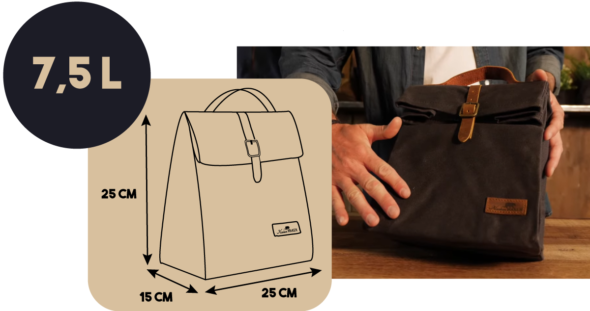 The waxed canvas allows the lunch bag to be waterproof and to protect your lunch from bad weather. This lunch bag is light (350g), which is convenient to take with you everywhere.