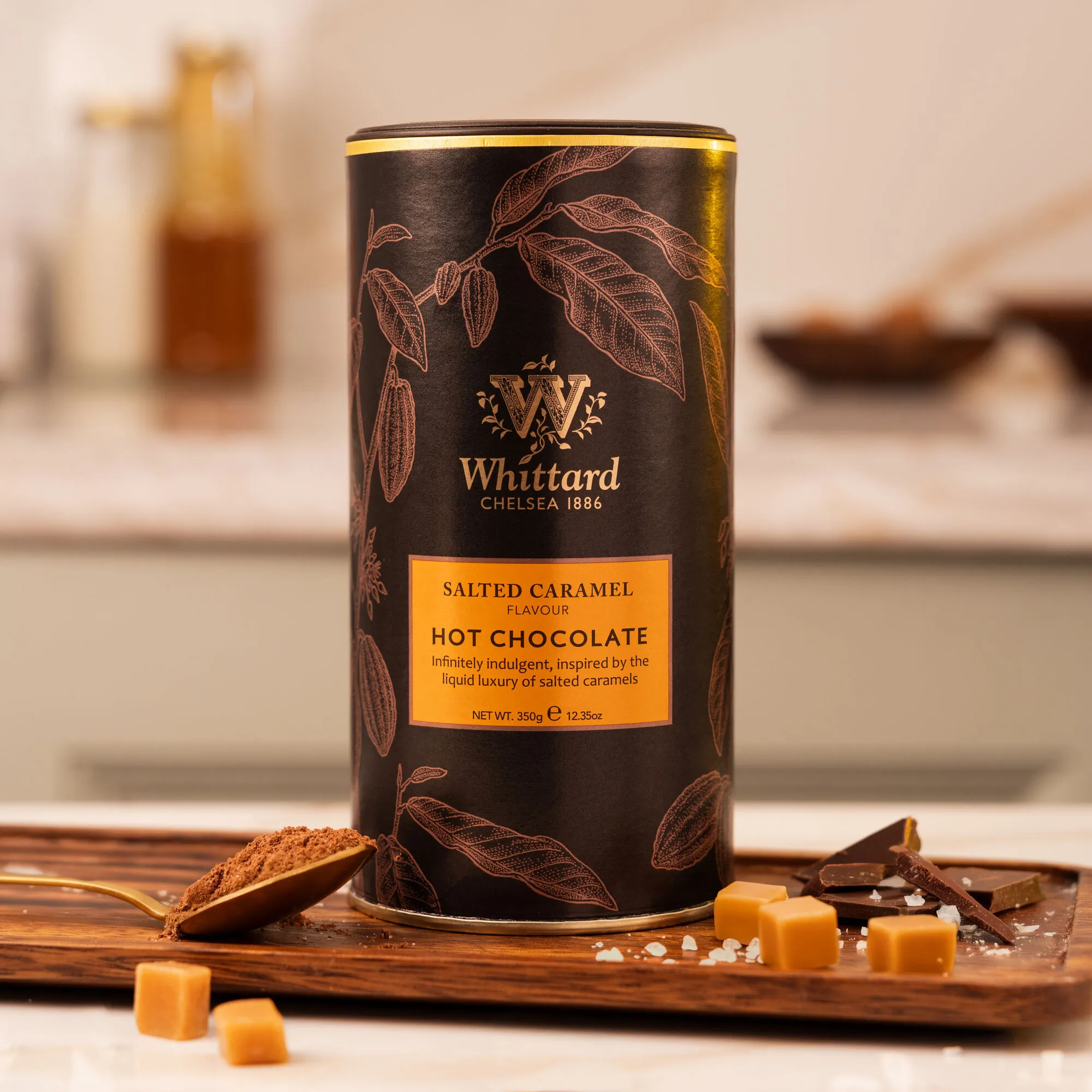 Inspired by the taste of Whittard’s favourite confectionery, a seriously show stopping hot chocolate with all the sophisticated sweetness of a classic salted caramel.
