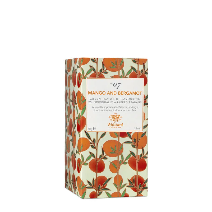 Presented in our charming Tea Discoveries box with a pattern inspired by 18th-century hothouses, our Mango & Bergamot individually wrapped teabags feature a sweetly sophisticated green tea, delicately blended with exotic flavours of mango and bergamot.